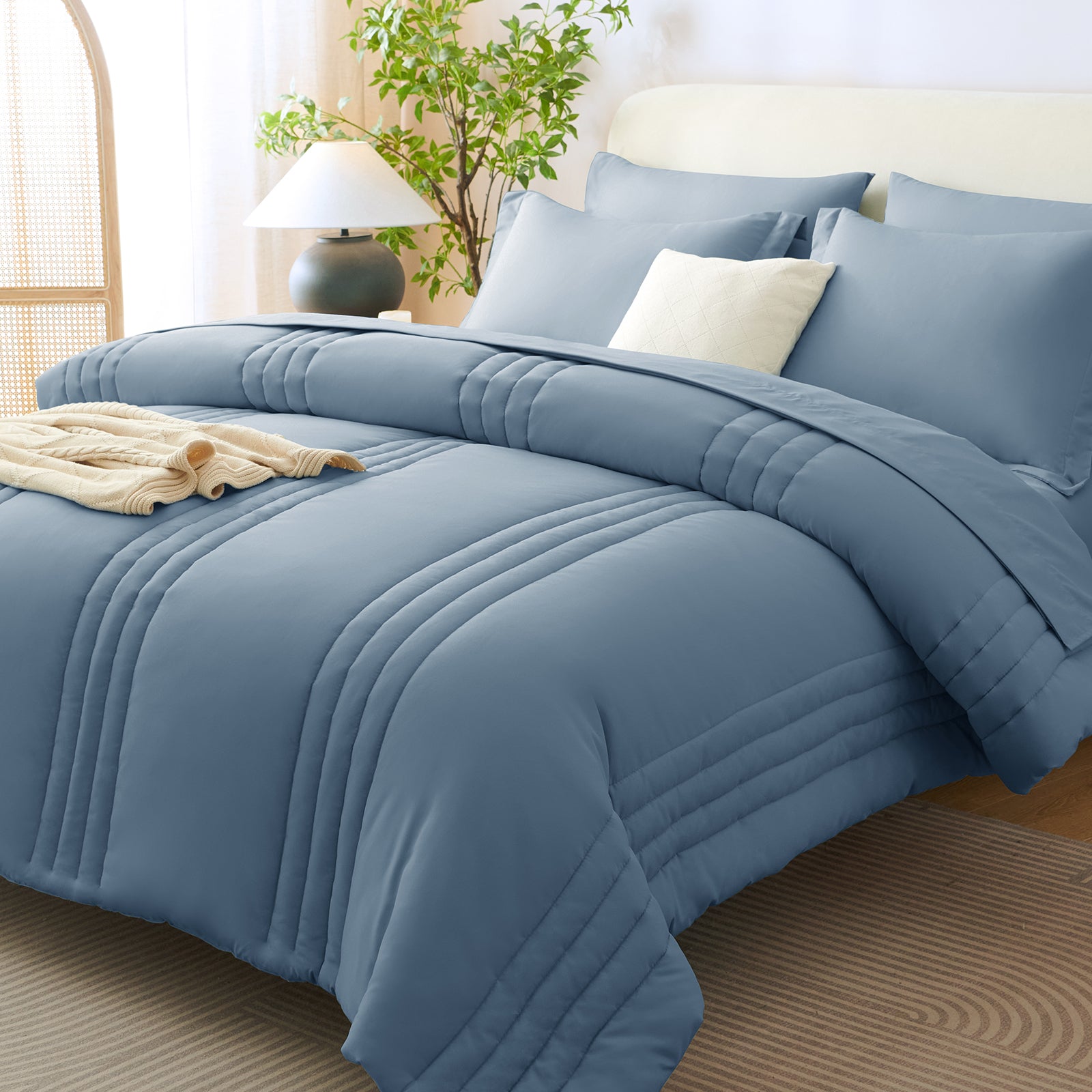 Elegant Design: If you're someone who loves simplicity and a clean look, our striped comforter bed set is just for you. It comes in a variety of colors, allowing it to seamlessly match different decoration styles. This makes it easy for you to create a harmonious and stylish bedroom environment.